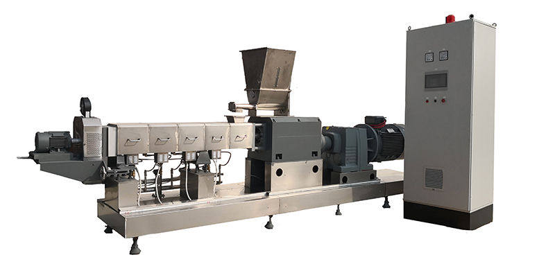 | Advantage: | (Dry type) 1.304 stainless steel food touch and protect plate, more durable, stable. 2.Equipped with heating and cooling system to precisely control the expansion temperature and improve product quality 3.Three separate inverter for main motor,cutting motor and feeding motor, to control the motor speed easily. 4.twin screw extruder, more powerful and high extrusion degree. 5.screws can be complete type or combined type, to meet different production requirement. 6.The forced lubrication system can make the working life longer 7. Self-cleaning, when stopping, it can be cleaned without disassembling 8. Adopting advanced world famous brand components(Siemens / Omron / Samsung/Schneider, etc) in electric parts and operation parts. |