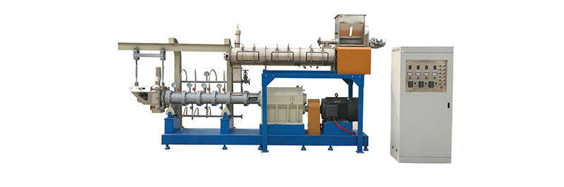 | Advantage: | (Dry type) 1.304 stainless steel food touch and protect plate, more durable, stable. 2.Equipped with heating and cooling system to precisely control the expansion temperature and improve product quality 3.Three separate inverter for main motor,cutting motor and feeding motor, to control the motor speed easily. 4.twin screw extruder, more powerful and high extrusion degree. 5.screws can be complete type or combined type, to meet different production requirement. 6.The forced lubrication system can make the working life longer 7. Self-cleaning, when stopping, it can be cleaned without disassembling 8. Adopting advanced world famous brand components(Siemens / Omron / Samsung/Schneider, etc) in electric parts and operation parts. |